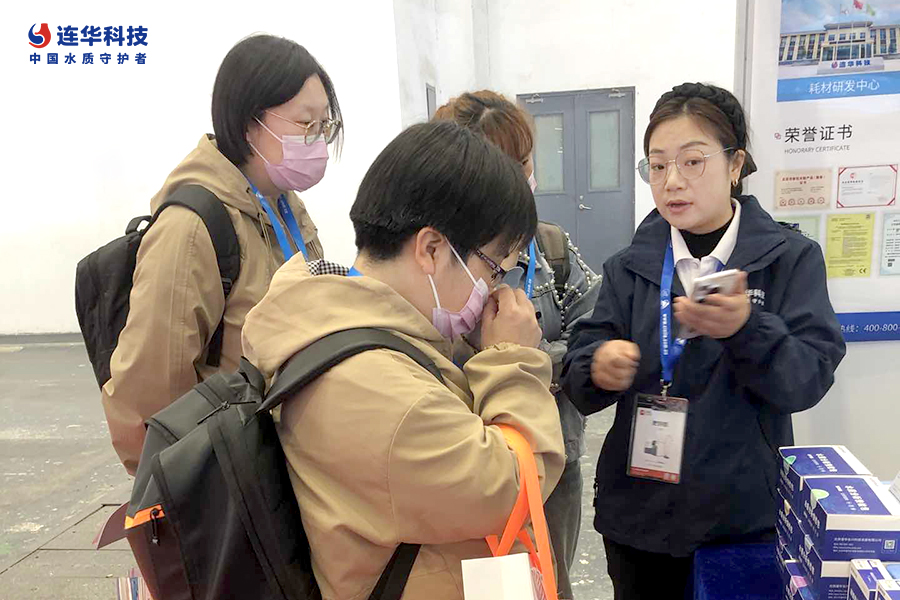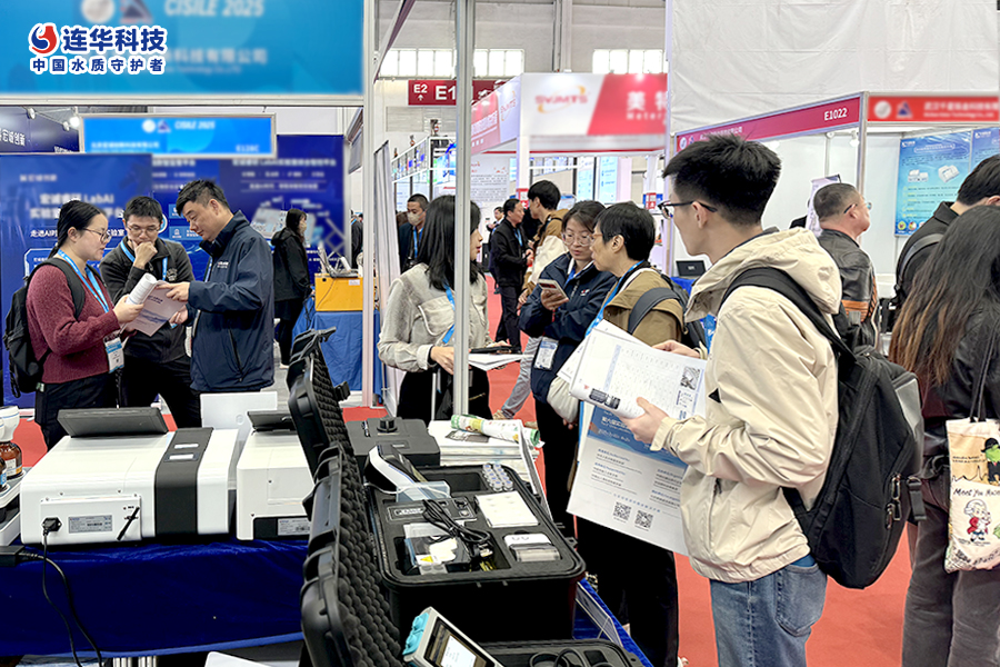 在E1043展位,連華科技以簡潔大氣的設計風格和豐富多樣的產品展示,吸引了眾多參會者的目光。作為水質檢測與分析儀器領域的佼佼者,連華科技此次攜紫外可見分光光度計LH-S700、便攜式多參數水質測定儀LH-E200、紅外測油儀LH-S600、化學需氧量(COD)智能回流消解儀LH-F510等十余款旗艦產品亮相展會,全面展示了其在環境監測、水質分析等領域的深厚技術積累與創新能力。