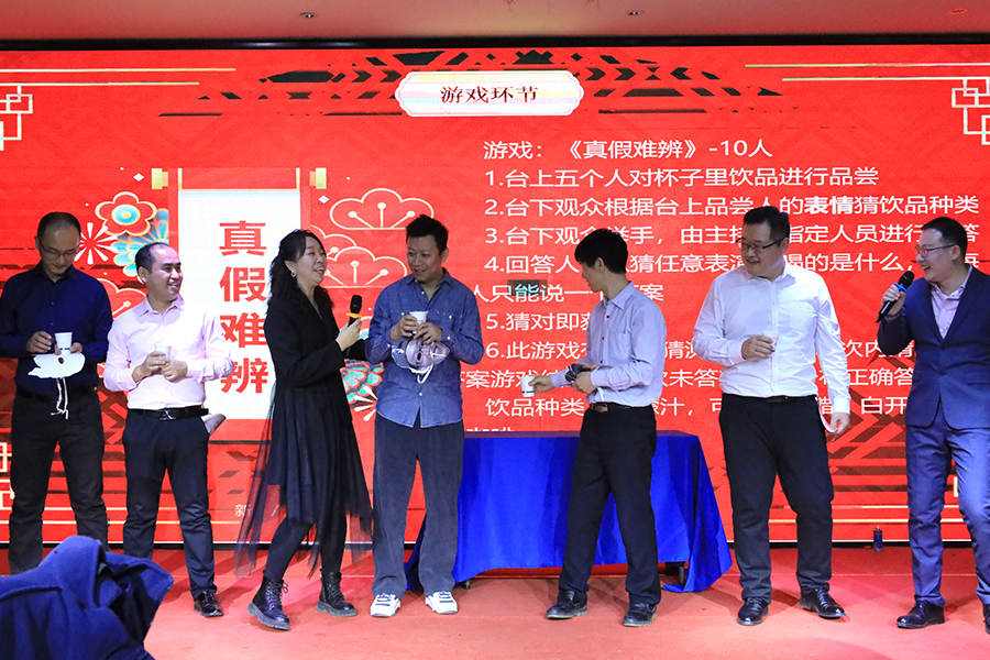 除了精彩的節目表演,互動游戲和幸運抽獎環節也穿插在節目表演中,讓大家更加投入到年會的氣氛中。員工們踴躍地參與游戲互動,歡笑聲此起彼伏。幸運抽獎更是讓現場氣氛一度達到高潮,幸運兒們喜氣洋洋地拿著獎品合影留念。節目表演結束后,晚宴環節正式開始,菜品豐富多樣,色香味俱佳,大家品嘗著美食,交杯換盞,暢談著工作和生活,笑容洋溢在每個人的臉上