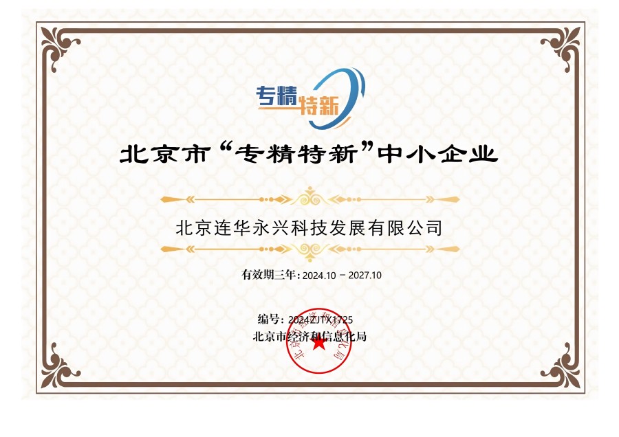 2024年10月份,北京市經濟和信息化局發(fā)布了關于對北京市2021年度專精特新中小企業(yè)到期復核通過的企業(yè)名單進行公告的通知,連華科技榜上有名,再次榮獲《北京市“專精特新”中小企業(yè)》榮譽稱號。