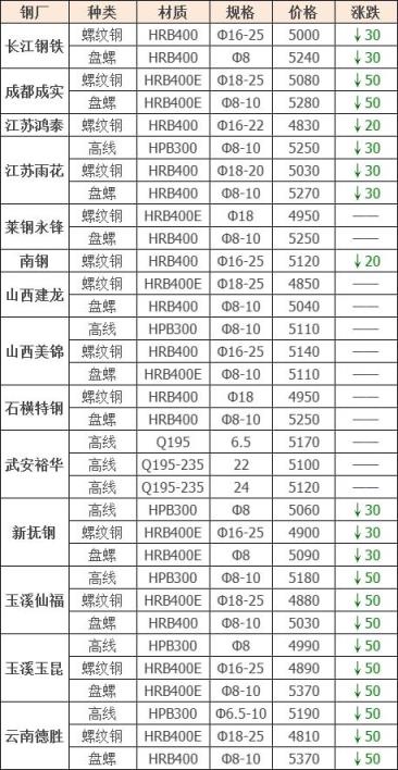 下調9家,占比64.3%,調價幅度20-50元/噸;
