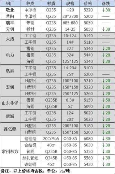 下調7家,占比63.6%,調價幅度10-40元/噸;