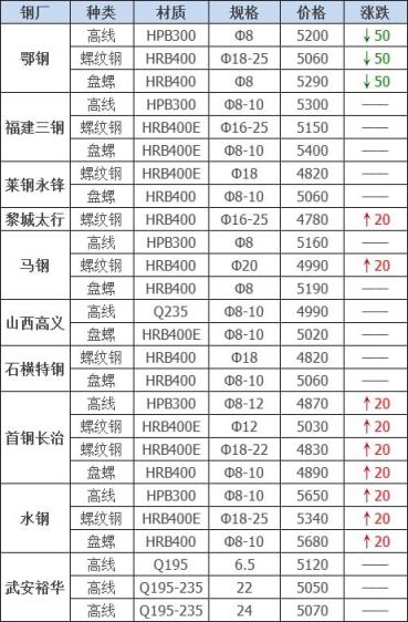 上調(diào)5家,占比21.7%,調(diào)價幅度10-20元/噸,