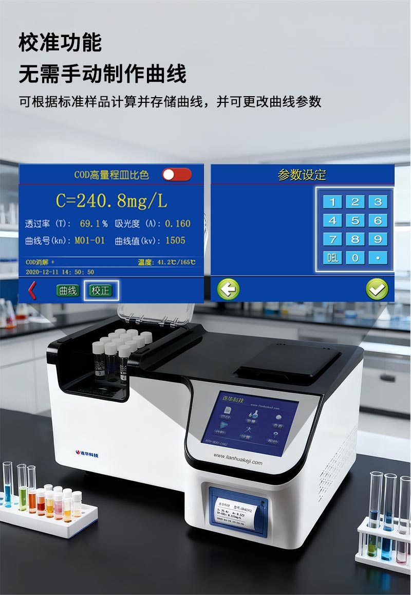 3.自帶消解器:儀器自帶消解器,具有智能升溫、智能定時和延時保護等功能,可對水樣進行消解;